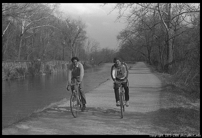 Bikers on the towpath for the C&O Canal. Along the Potomac River near Washington, D.C. 1981.